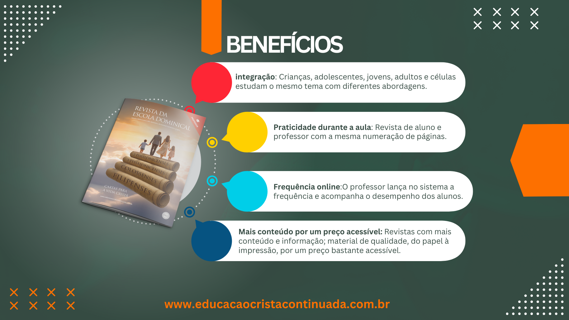 Adquira o novo Roteiro para Células "Filipenses, Colossenses, 1 e 2 Tessalonicenses - Cartas para a vida Cristã." Disponível para Android e iOS no aplicativo Revista da Escola Dominical (anexado à Revista de Adultos) ou em nossa loja física localizada na Tv. 14 de Março, 1511 - Nazaré, Belém-PA Pedidos e +informações: (91) 3110-2400 (91) 98488-6910 (WhatsApp)